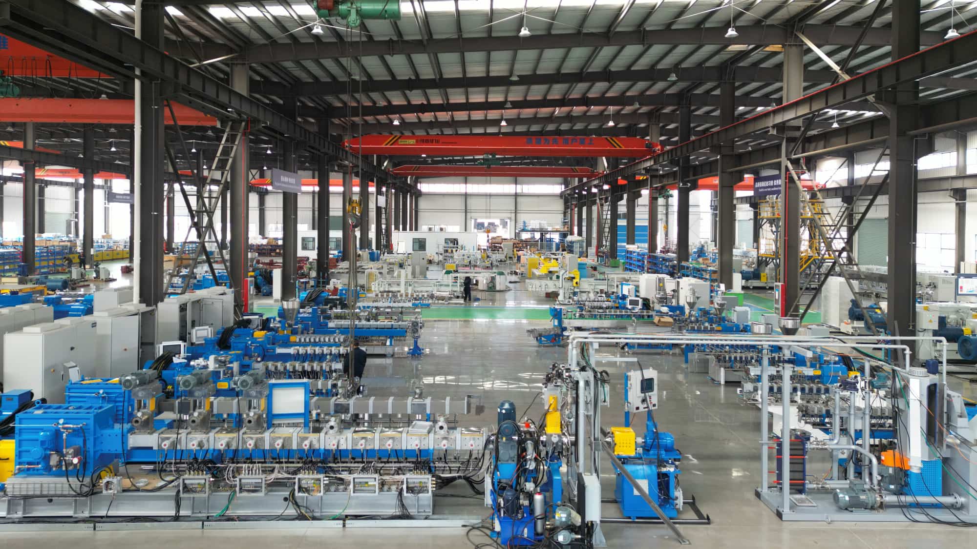 > 江苏k1体育 提供专为高产能聚烯烃共混造粒而设计的大型挤出机,最大产量可达每小时 55 吨,可确保您的高效生产。我们的服务范围可涵盖自动化材料输送、共混、造粒及包装。